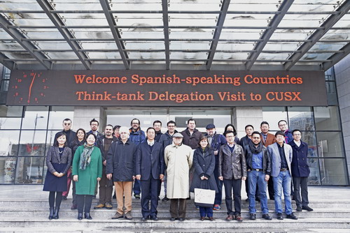 3月24日,前西班牙驻华大使欧亨尼奥·布雷格拉特率西语国家智库考察团一行10人来校访问交流。中共中央对外联络部信息传播局新闻处李德正秘书、山西省人民政府外事侨务办公室新闻文化处张华禹处长陪同访问。考察团在校长王建国、副校长王红叶的陪同下参观了广告专业学生教学过程展、电子阅览室和广播电影电视认知实验室,并与教务处、科研处、国际交流合作处、各系主要负责人进行了座谈交流。座谈会由王红叶副校长主持。